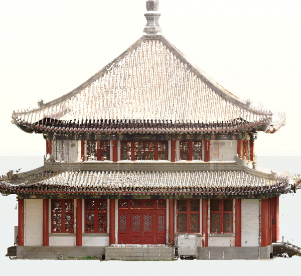 使用法如大空間激光掃描儀,能夠快速、輕松、準確地獲取復雜物體和建筑物的測量結果。根據掃描數據進行優化處理,還原北閣的三維模型。