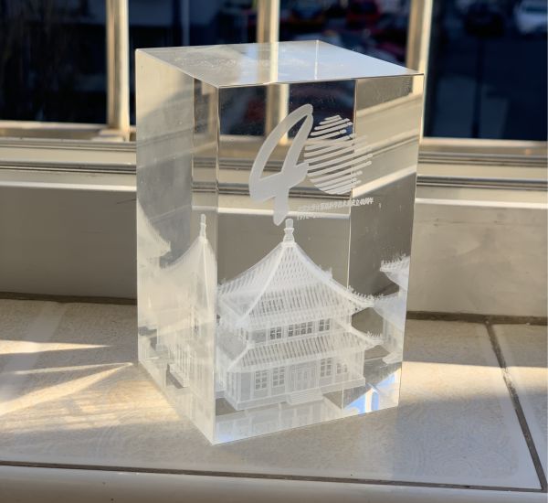 北閣原稱麥風閣,坐落于風景秀麗的燕園中心部,現為北京大學國際戰略研究院的辦公地點,是北京大學校內的知名建筑。我們提供的禮品方案:以北閣作為禮品中的核心建筑。但由于建筑圖紙缺失,我們需要結合三維掃描技術獲取北閣的三維模型數據,再通過激光內雕把建筑呈現出來。