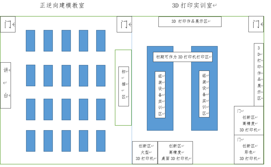 北京某學院3D打印實訓室 根據(jù)校方要求,我們了解到3D打印實訓室總規(guī)劃面積為200 m2。根據(jù)實訓室的用途,需要采購的設(shè)備,可分為五大區(qū)域 實訓室布局規(guī)劃 根據(jù)校方要求,我們了解到3D打印實訓室總規(guī)劃面積為200 m2。根據(jù)實訓室的用途,需要采購的設(shè)備,可分為五大區(qū)域: 展示區(qū) 三維模型設(shè)計區(qū) 逆向成型設(shè)計區(qū) FDM組裝與調(diào)試區(qū) 3D打印創(chuàng)新區(qū) 部分設(shè)備介紹 Artec/EVA 彩色手持三維掃描儀 可提供快速、準確、肌理豐富的完美3D掃描。掃描過程迅速,色彩鮮亮,分辨率高,幾乎可用于所有場合,且輕便、快捷、多功能 適用于掃描藝術(shù)類等不規(guī)則、大型作品的掃描 FARO?DESIGN SCANARM 高精度三維掃描臂 采用光學領(lǐng)域中領(lǐng)先的藍色激光技術(shù),具有極高的掃描速度,可生成高分辨率點云數(shù)據(jù),無需貼點 ?? 適用于掃描工業(yè)類等精密零件掃描 YUNS?Y100組裝打印機 結(jié)構(gòu)簡單,是3D打印入門級設(shè)備,價格便宜 交由學生拆裝,了解設(shè)備結(jié)構(gòu),學習3D打印成型原理 YUNS Y300桌面FDM打印機 打印尺寸大,成型速度快,適合中小批量打印 可批量打印學生創(chuàng)意作品 UNIZ桌面機 DLP樹脂打印,大成型尺寸,高精度打印、高表面質(zhì)量、全自動支撐生成 可直接打印學生畢業(yè)設(shè)計等高精度模型 Ultra?3SP 全新的3SP?(掃描、旋轉(zhuǎn)、選擇性光固化)技術(shù),從STL文件快速精準地打印輸出。使用多腔二極管激光器的操作成本低;最少的材料損耗降低成本。較大的成型空間 工業(yè)級精度,可直接生產(chǎn)出誤差內(nèi)的成型零件 Objet260 樹脂噴射彩色3D打印機,可使用一系列多種材料組件(包括剛性、柔性、透明和耐用組件)創(chuàng)建顏色鮮亮的原型 色彩豐富,成品無需上色 最終結(jié)果 3D打印實驗室功能實現(xiàn): 設(shè)計可以在較短的時間很快實現(xiàn)并得到驗證及完善設(shè)計,充分發(fā)揮設(shè)計創(chuàng)造力; 結(jié)合3D打印實驗室配置的設(shè)備,可充分有效的將自身設(shè)計的物品制作出來,創(chuàng)造產(chǎn)品真實呈現(xiàn)給人們; 基于空間內(nèi)的設(shè)備設(shè)施,可用于創(chuàng)客體驗、培訓、競賽、技術(shù)交流等; 整個制作過程在3D打印實驗室內(nèi)完成,可用于教學,提升人員自身技能及拓寬生產(chǎn)制造思路。 更多詳情請點擊——教育科研 上頁 下頁